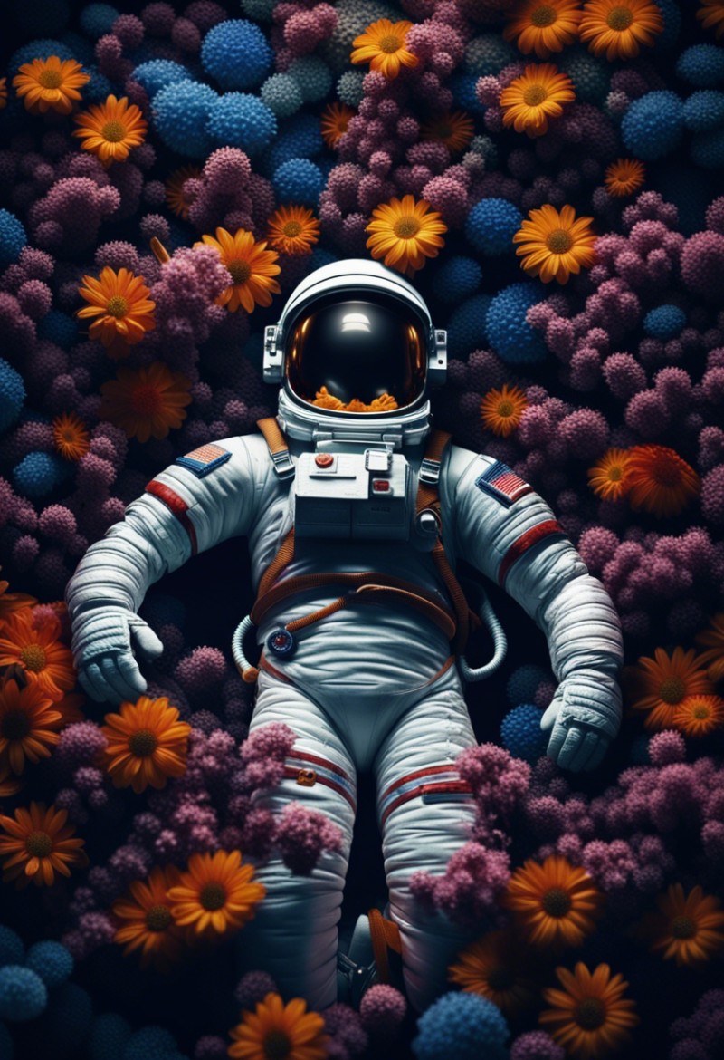 astronaut laying in flowers